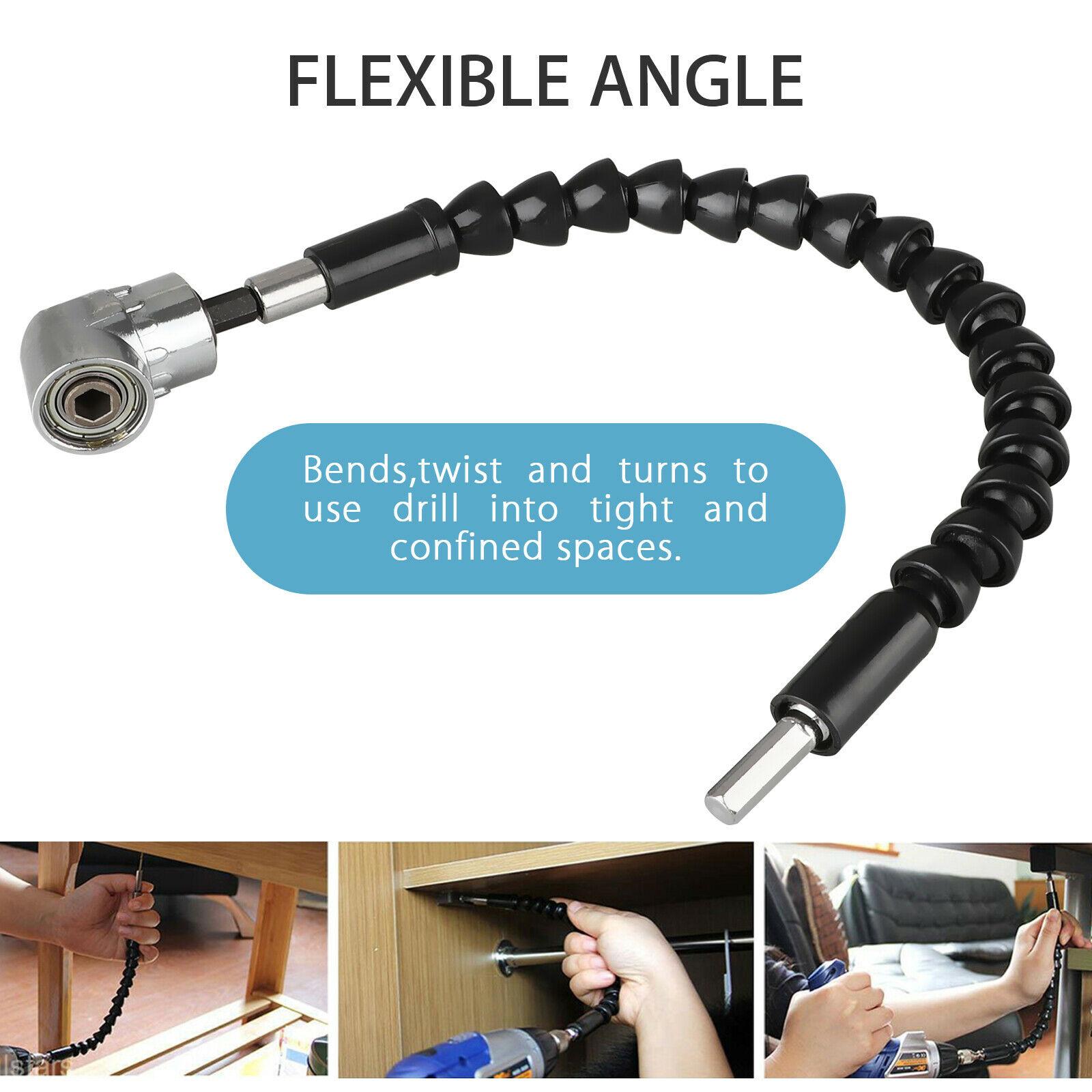 The Right Angle Drill Adapter is a tool designed for maintenance and installation in confined spacesPerfect for turning lengthening and for repairing tools. The quick-change chuck accepts all 14 hex shank bits. 2-In-1 angle drills bit kit.